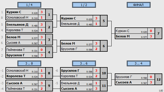 Ветераны опять борозды не испортили После пятничной битвы в турнире МДСС игроки первого состава сборной МГУ отдыхали. И возможность проявить себя в субботнем ристалище «Белые молнии МГУ» (20.09.2025) получили молодые бойцы. Кое-что им сделать удалось. Так, на групповом этапе первокурснику истфака Аборневу удалось переиграть академика Колесникова. А у второкурсника химфака Осмоловского получилось с третьего места посева выйти в первый финал. Во втором финале небольшой спортивный подвиг совершила студентка ФИЯР Галузинская Яна. Она, «без изъяна» превозмогла сопротивление трех мужчин и выиграла утешительный финал. В основном финале свои «стальные зубы» показали ветераны. После разборок между собой они разыграли призовые места таким образом: «бронзу» взял чемпион МГУ в команде физик Александр Сысоев; в битве за «золото» легендарный капитан мужской сборной МГУ «лохматых» времён Михаил Белов оттеснил на вторую ступеньку пьедестала почёта лидера команды поддержки юриста Сергея Куркина. Специальный приз «За волю к победе» был вручен Гавриилу Аборневу, весьма успешно выступившего в этом турнире.