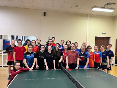 Традиционный предновогодний микст-турнир «Битва дуэтов» состоялся в минувший четверг (11.12.2025) в ЦС МГУ по настольному теннису. Призовые места оспаривали 16 команд, в состав которых входили как действующие спортсмены, так и ветераны университетского спорта (например победитель битвы «Седые пантеры» академик Сергей Колесников, игрок сборной МГУ в 80-е выпускница ЭФ Алла Кузнецова, 5-кратный чемпион Университета среди преподавателей и сотрудников замдекана ФГП Станислав Билюга, 7-кратная чемпионка МГУ выпускница мехмата Анна Маслакова, трехкратная чемпионка МГУ выпускница юрфака Татьяна Гарифуллина-Королева…).