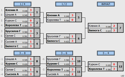Зачётная сессия, стартовавшая 20-го декабря, предполагает активность экзаменаторов. В минувшую субботу роль этих экзаменаторов во время турнира исполнили теннисисты ЦС МГУ старшего поколения. Именно они заняли призовые места по итогам турнира. Выпускница юрфака Татьяна Гарифуллина-Королёва - взяла «бронзу». «Серебро» досталось выпускнику физфака Андрею Кленину. Победное «золото» - - у выпускника ФГП Станислава Билюги. Из ныне действующих теннисистов ЦС МГУ Станислав выигрывал турнир "БМ МГУ"чаще других.